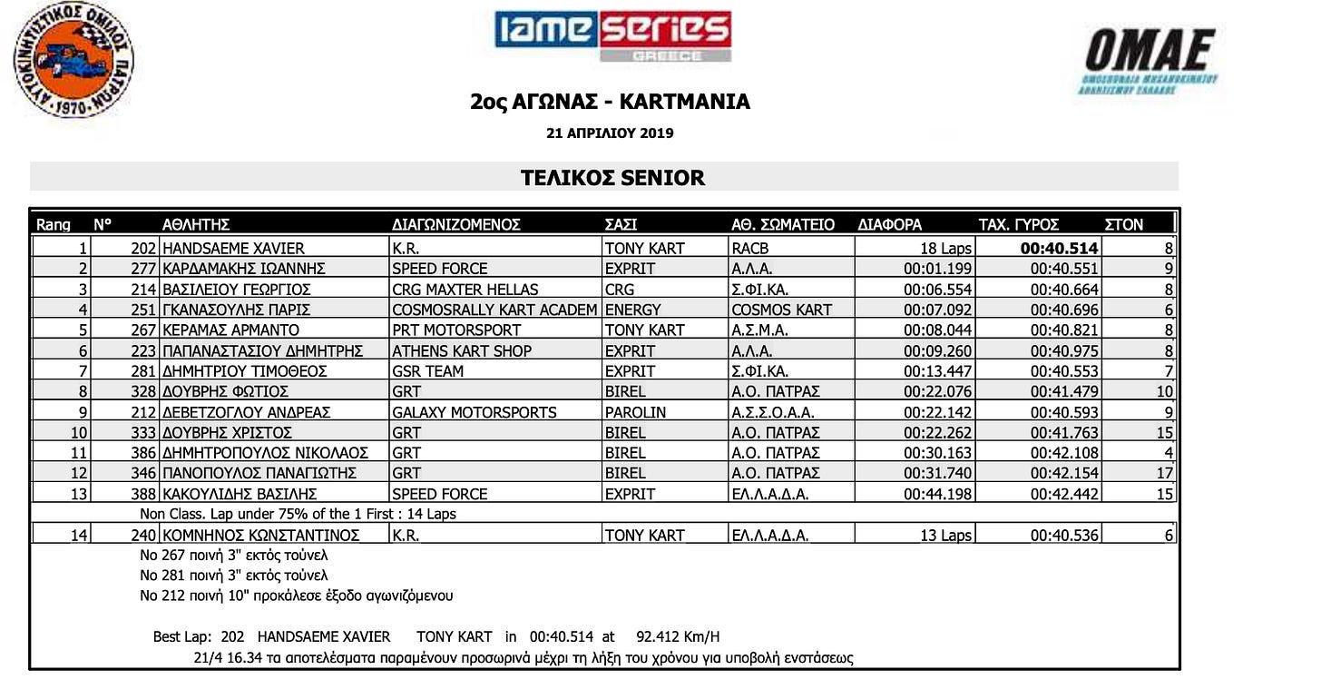 The perfect example was the 2nd race of the IAME Series Greece in 2019. I was in prime condition, and I had won the 1st round in the Senior class, even though I was well into my mid-thirties. Not an easy achievement. So I was quite excited going into the 2nd round in the city of Patras, which is a circuit that really suits my driving style and where I had won in the past.